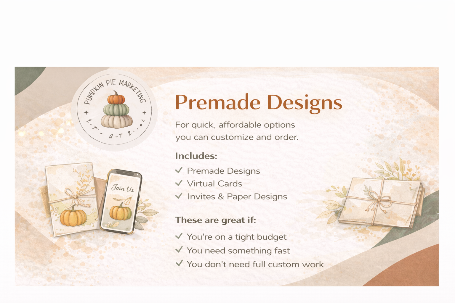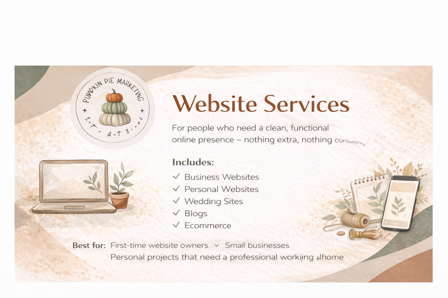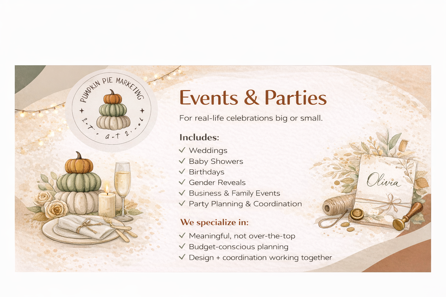 Pumpkin Pie Marketing & Events offers clear, flexible services for individuals, families, and small businesses who want things done well without needing a big budget or a big team.
